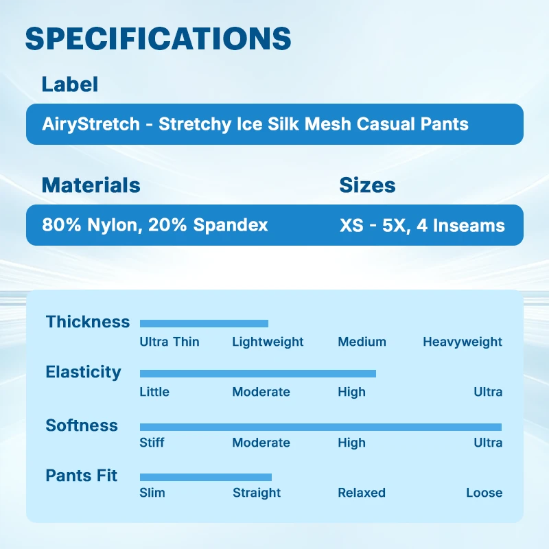 With 20% Spandex, AiryStretch provides a 4-way stretch with perfect shape retention. Ditch the stiff, restrictive pants and welcome dynamic mobility.